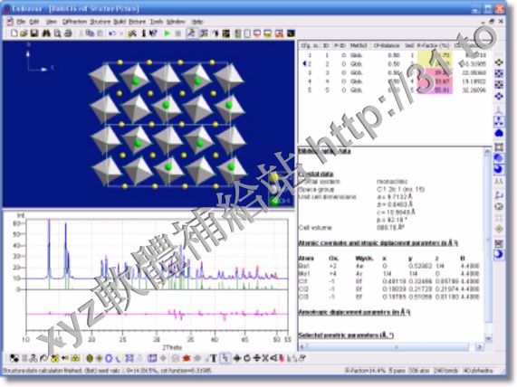的計算與測量衍射樣品差異,讓使用者觀看從完全隨機原子組合到最後成型晶狀結構的進化