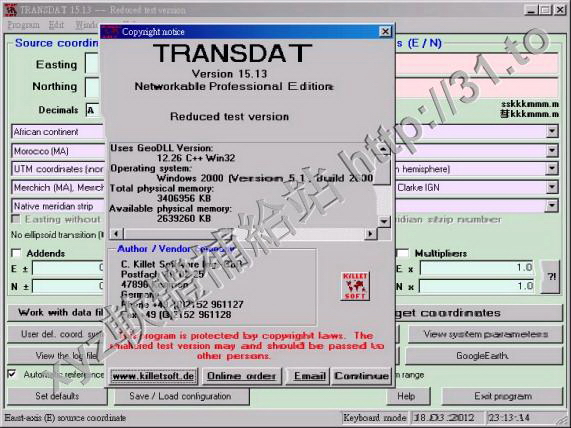 • Killetsoft TRANSDAT v17.37 英文正式版(地理坐標轉換軟體)