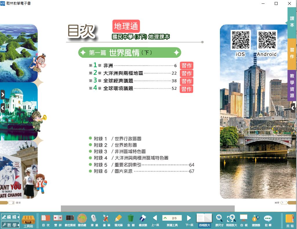 108學年下學期 國中 翰林版 地理電子書 3年級(含課本、習作含解答)教學光碟DVD版