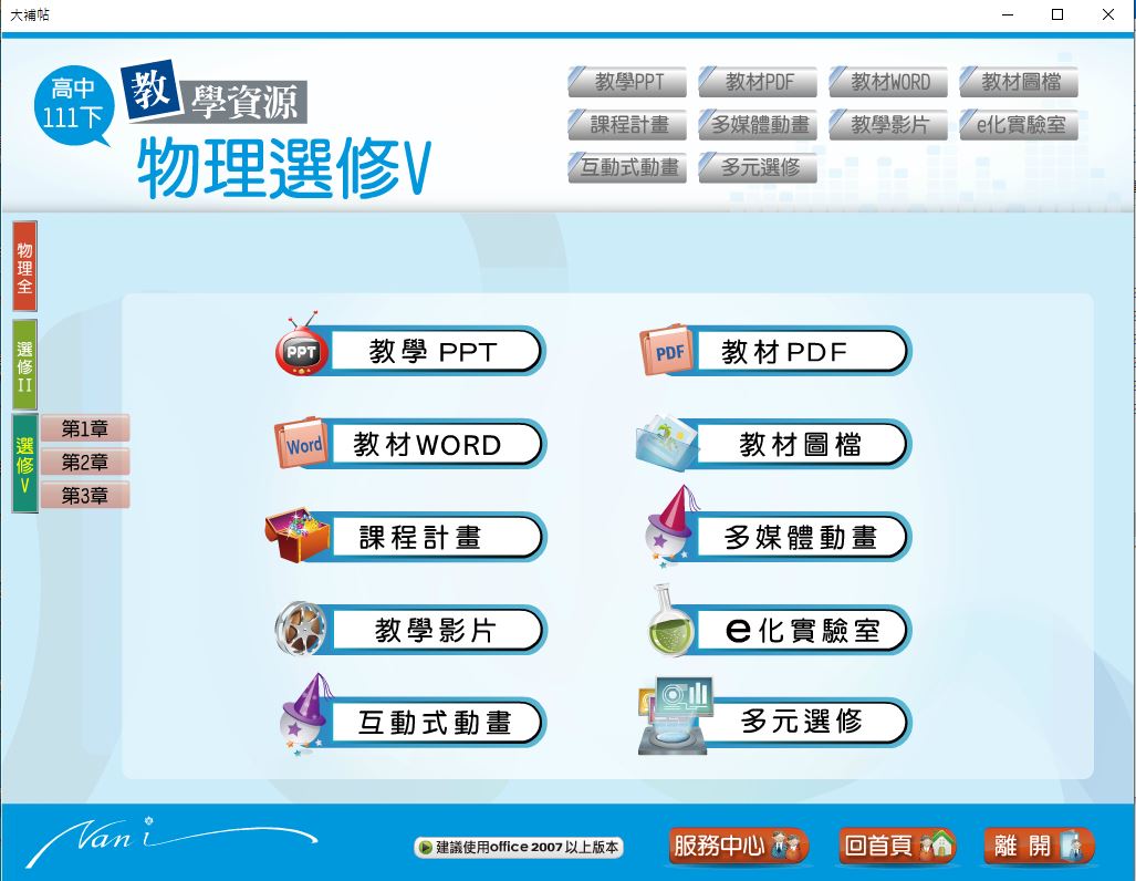 111學年下學期 高中大補帖 南一版 物理科(全、選修II、選修V) 教學光碟