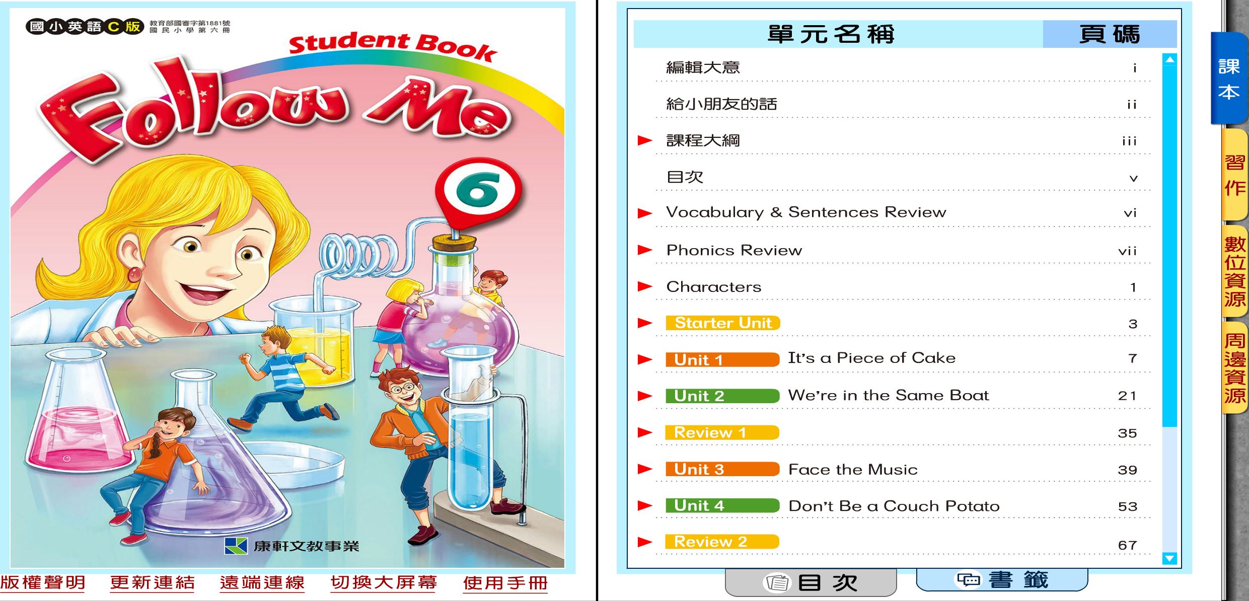 111學年下學期 國小 康軒版 英語電子書 Follow Me 第6冊(含課本、習作含解答) 教學光碟