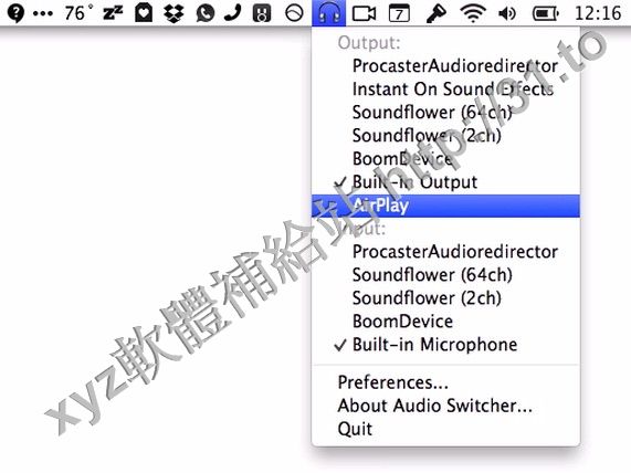 使用AudioSwitcher for mac,能方便的在下拉菜單中任意選擇系統內置或第三方軟件