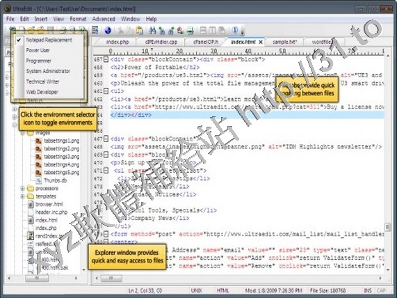 PHP, Perl, Java and JavaScript editor for programmers. UltraEdit