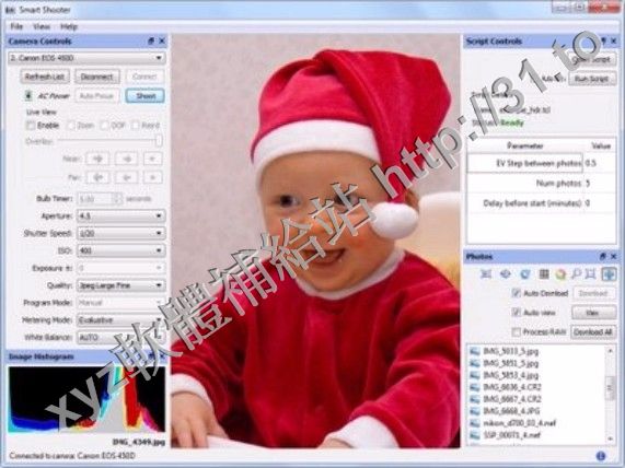 Smart Shooter讓您從電腦完全控制您的數碼相機,你完全可以在幾秒鐘內評估您的照片,和真正的實時取景輸出,協助你集中注意力,並組成完美的畫面。指令碼語言可以讓您控制您的數碼相機,讓你把多張照片,有不同的設定,只需通過點擊一個按鈕。