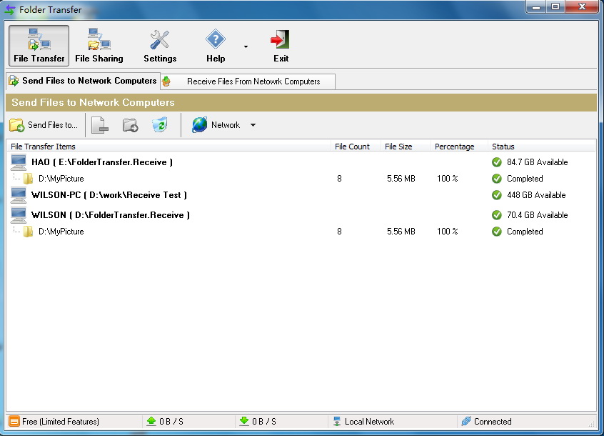 Folder Transfer can transfer files and folders to multiple comput-