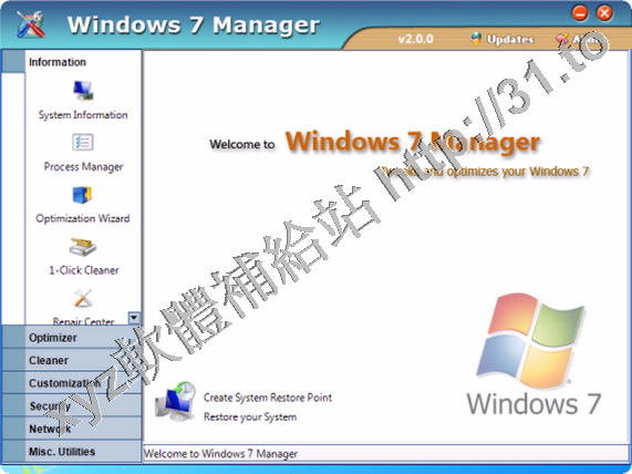 • Yamicsoft Windows 7 Manager v2.1.5 英文正式版(Widnows 7 總管是優化和設置軟體)