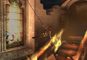 配合場景上不起眼的小東西來過關,像是故意把石頭擊落,或是到處丟丟繩鉤,就會發